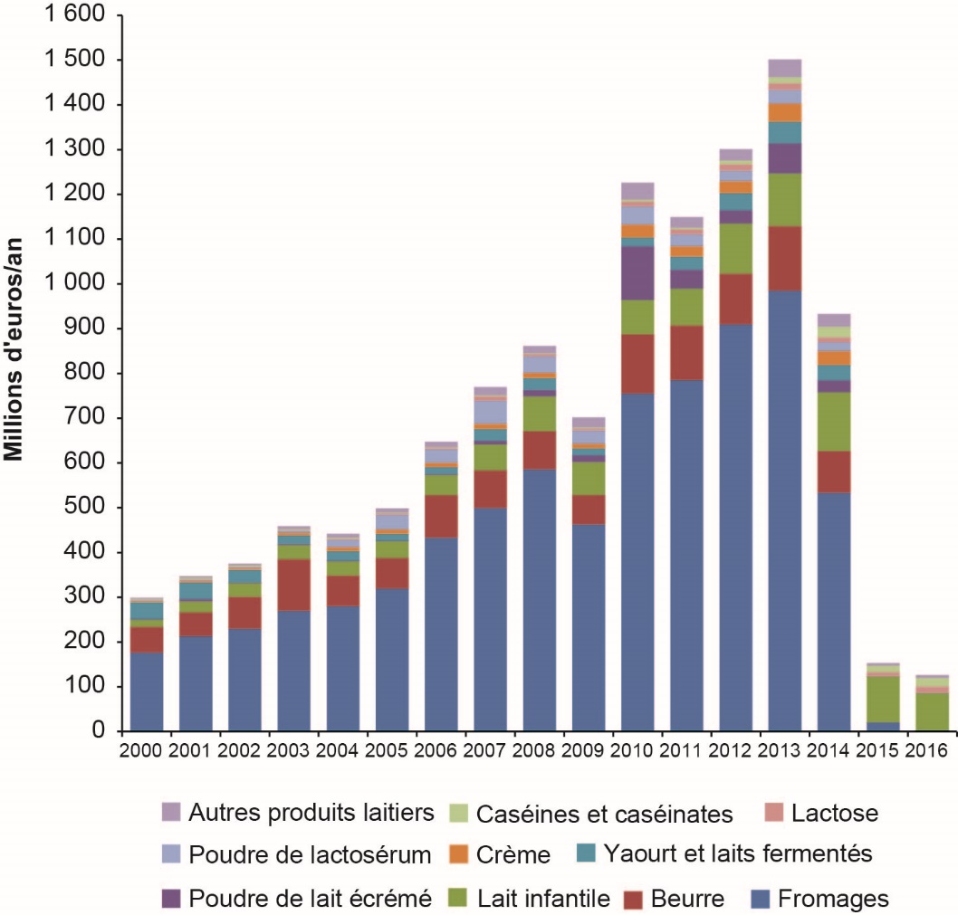 - Chatellier V., 2016. Le commerce international, européen et français de produits laitiers : évolutions tendancielles et dynamiques concurrentielles. INRA Prod. Anim., 29, 143-162.