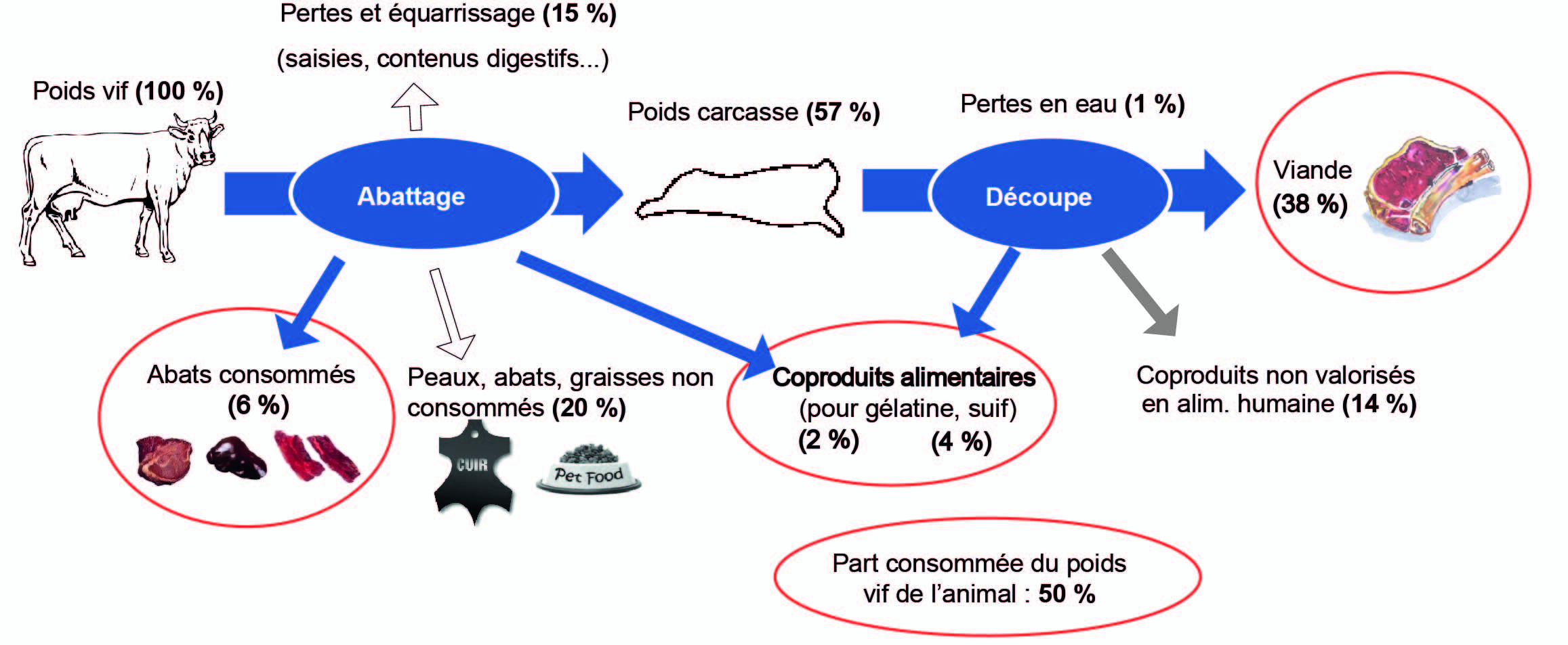 Figure 1. Détermination de la part « consommable par l’Homme » d’une vache allaitante (en % du poids vif).