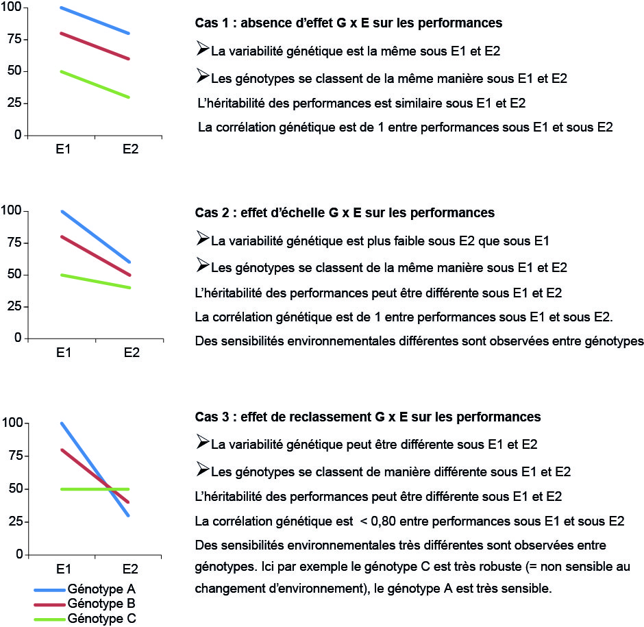 Encadré 2. Les différents effets possibles d’interaction génotype x environnement (GxE) (d’après Phocas et al., 2017).