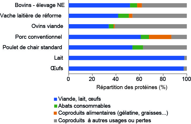 Figure 6. Répartition des protéines corporelles des animaux, ou de leurs produits, entre les parties consommables ou non (d’après Laisse et al., 2017).