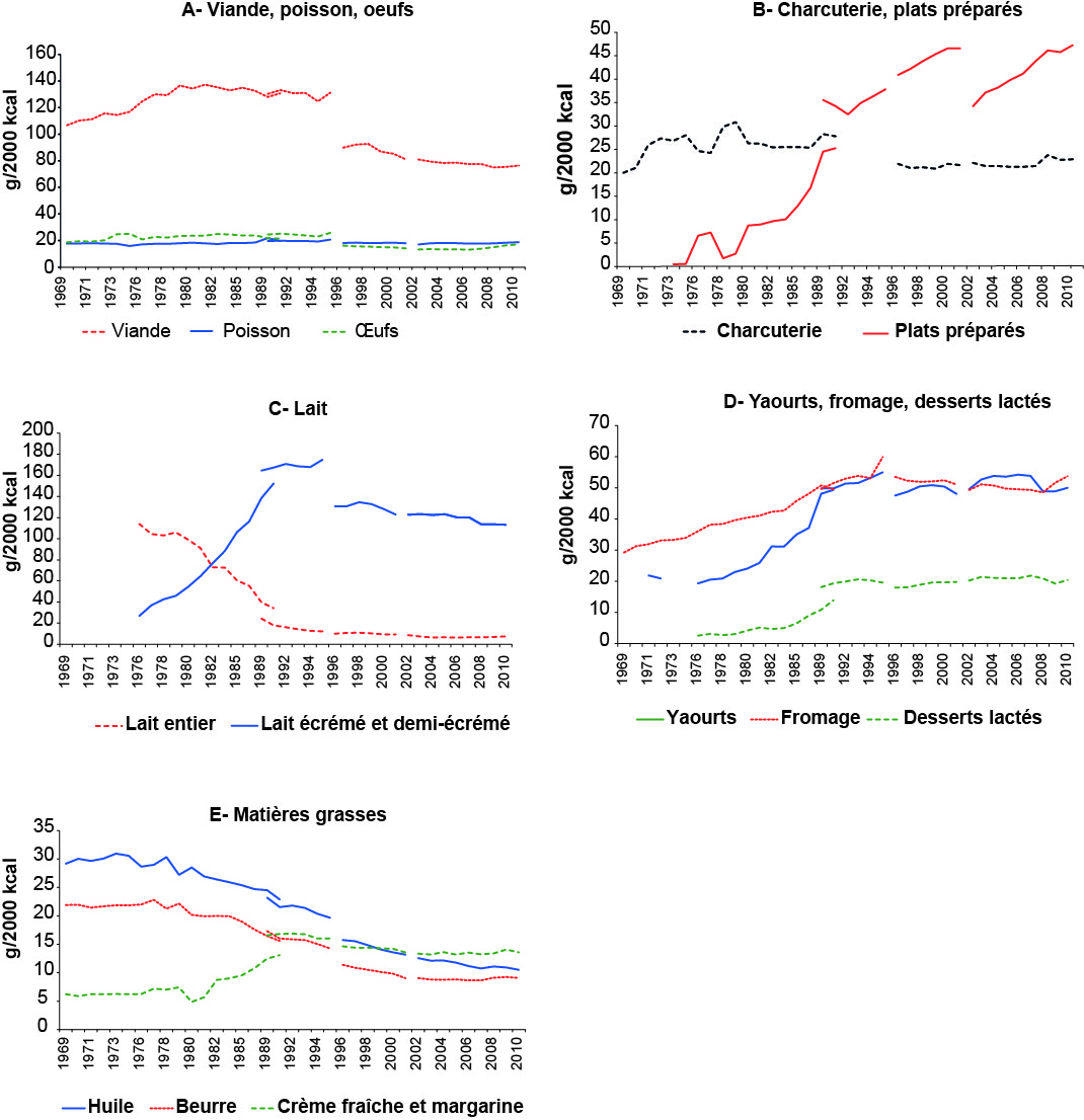 - Caillavet F., Darmon N., Létoile F., Nichèle V., 2018. Is nutritional quality of food-at-home purchases improving? 1969–2010: 40 years of household consumption surveys in France. Eur. J. Clin. Nutr., 72, 220-227.