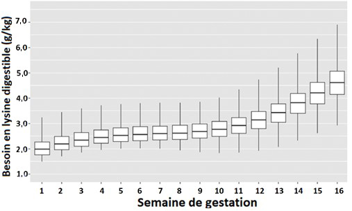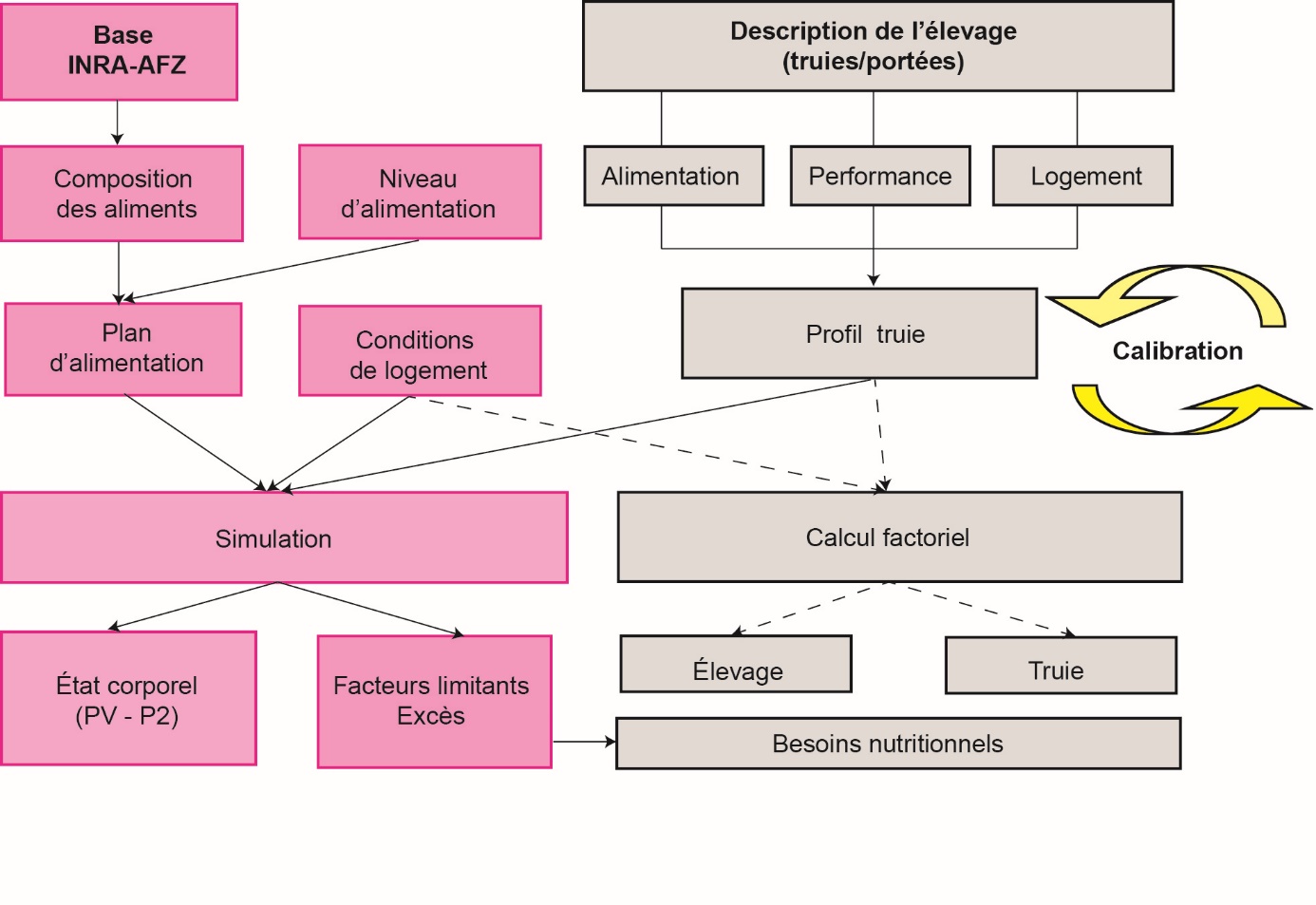 Bien que des progrès restent à accomplir, les relations entre la nutrition et la reproduction sont bien mieux comprises, ainsi que leurs bases biologiques, permettant une approche intégrée de l'alimentation des truies. Jusqu'au milieu des années quatre-vingt, les recommandations nutritionnelles des truies étaient principalement basées sur des relations empiriques entre les apports en nutriments et les performances. Par la suite, des méthodes analytiques ou factorielles ont été progressivement développées afin de calculer les besoins en fonction des différentes dépenses et permettre leur adaptation à des objectifs de performance et des conditions de logement spécifiques. Des modèles mathématiques ont ensuite été développés, intégrant toutes les connaissances disponibles sur l'utilisation des nutriments chez les truies, et des outils d'aide à la décision ont été produits à partir de ces modèles. Une question importante en suspens reste de savoir comment mieux gérer en pratique la variabilité des besoins entre truies. Dans cette perspective, les résultats récents indiquent que l'alimentation de précision, appliquée au niveau individuel ou en petit groupe, semble une stratégie prometteuse pour mieux adapter les apports en nutriments aux besoins individuels, améliorer leur efficience d'utilisation et réduire l’excrétion et le coût de l'alimentation.
