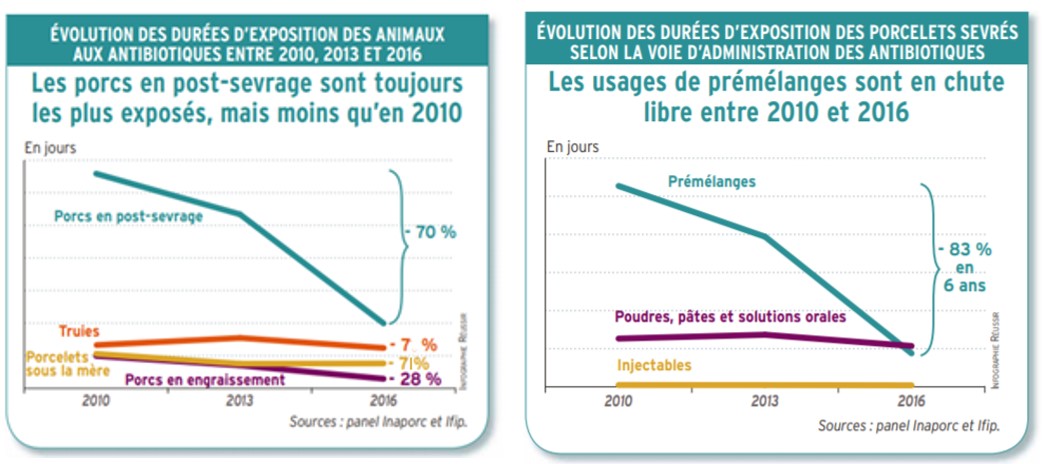 - Hémonic A., Poissonnet A., Chauvin C., Corrégé I., 2019. Evolution des usages d’antibiotiques dans les élevages de porcs en France entre 2010 et 2016 au travers des panels INAPORC. In: Journées de la recherche porcine, 51, 277-282. http://www.journees-recherche-porcine.com/texte/2019/santeanimale/s06.pdf