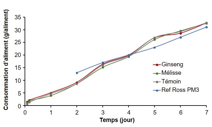 Malgré le peu d'informations disponibles sur les extraits de plantes utilisés, l'analyse des effets positifs sur l'immunité des volailles a mis en évidence quatre plantes intéressantes : l'astragale, l'échinacée, le ginseng et la nigelle. La nigelle n'a pas été retenue pour la suite du projet, de par le risque de toxicité connue (Zaoui et al., 2002) et du coût élevé de l'extrait. A contrario, la mélisse a été ajoutée. Elle n'a pas été sélectionnée lors de la recherche bibliographique sans doute par les mots clefs choisis pour le champ thématique relatif à l'immunité. Cependant connue pour ses effets antioxydant et anti-inflammatoire impliqués dans l'immunité innée (Dhama et al., 2014 ; Miraj et al., 2017), elle a été ajoutée à la liste des extraits de plantes retenus d'autant plus qu'elle est répandue en France et facilement cultivable. Lors de l'étape de recherche bibliographique, il est très important de définir les mots clefs recouvrant le plus le champ thématique. Dans notre étude, l'intégration des mots clefs « antioxidant », « oxidative stress » and « inflammation » auraient été pertinents pour mieux définir l'immunité innée. Ainsi l'astragale, l'échinacée, la mélisse et le ginseng ont été sélectionnés pour la suite du projet et particulièrement la mélisse (Melissa officinalis) et le ginseng (Panax ginseng) étudiés dans toutes les étapes de caractérisation et d'évaluation des activités biologiques chez le poulet (encadré 2).