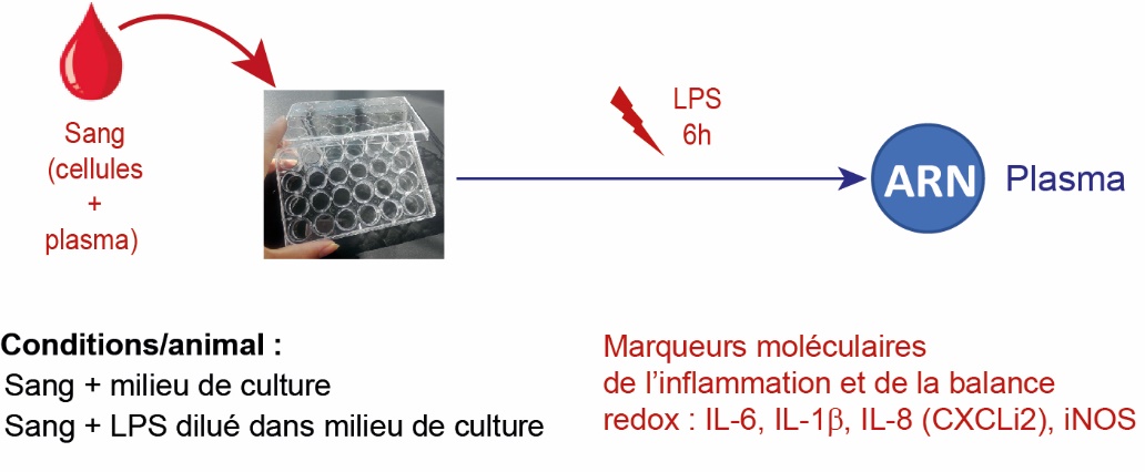 Pour évaluer l'activité pro/antioxydante et pro/anti-inflammatoire des extraits de plantes, des modèles d'inflammation et de stress oxydant sont développés sur cellules in vitro (Mengome et al., 2014 ; Islam et al., 2018). Chez le poulet, ces modèles sont plus souvent réalisés in vivo (Liu et al., 2015 ; Wu et al., 2017 ; Lv et al., 2018 ; El-Senousey et al., 2018). Pour réduire le recours à l'expérimentation animale, le développement de méthodologies alternatives sont encouragées (principe des 3R, Russell et Burch, 1959 ; Richmond, 2000). Les lignées cellulaires ayant intégré un gène reporteur de l'expression de gènes d'intérêt sont un puissant outil pour le criblage de molécules bioactives in vitro. Le facteur nucléaire kappa B (NFκB) est un facteur de transcription qui joue un rôle majeur dans de nombreux processus immunitaires, comme l'inflammation. Le suivi de l'expression de ce facteur de transcription permet une meilleure compréhension des phénomènes d'immunostimulation engendrés par différentes molécules. L'activation des voies de signalisation liées à NFκB par les extraits de ginseng et de mélisse a été évaluée avec la lignée cellulaire macrophagique HD11-NFκB luciférase, ayant intégré le gène de la luciférase en amont du gène NFκB (Garrido et al., 2018 ; Travel et al., 2021), un outil unique dans la communauté de l'immunologie aviaire.
