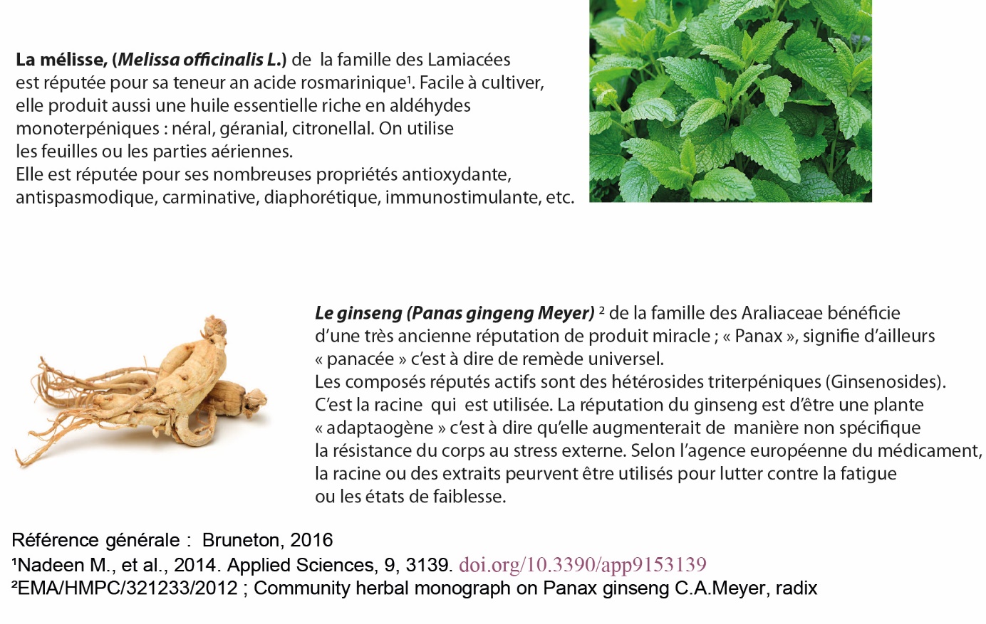 Encadré 2. Melissa officinalis et Panax ginseng, des plantes d’intérêt pour la santé des volailles.