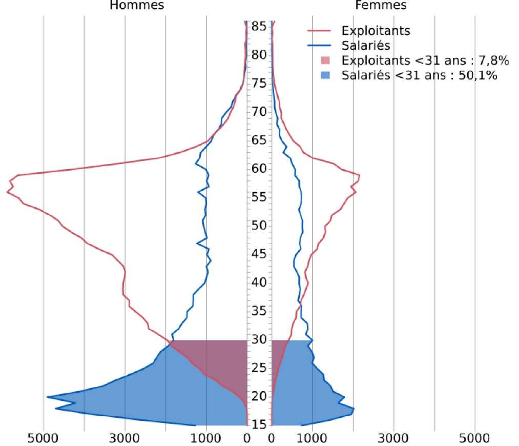 - Pour préciser ces trajectoires, il faudrait aller plus loin dans l’appariement entre les données du RA et de la MSA, en le menant non plus seulement à l’échelle des exploitations mais aussi des individus, pour identifier les éventuels liens familiaux. Aucun identifiant individuel ne le permet toutefois directement.