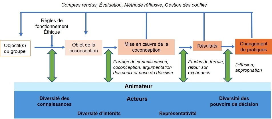 Pour que le processus de coconception soit efficace et aboutisse, les animateurs doivent travailler sur un temps long, assurer la représentation équilibrée des parties prenantes, comprendre et gérer les tensions éventuelles et adopter un mode de communication transparent, pour favoriser un climat de confiance et de coopération. Ainsi, les différents acteurs peuvent s’extraire de leurs points de divergences possibles, percevoir et mobiliser les compétences et points de vue de chacun, afin de focaliser leurs efforts vers la coconception pour un intérêt commun. La diffusion des résultats et leur traduction en actions concrètes sur le terrain représentent l’enjeu ultime. Pour y parvenir, il nous semble important de veiller à replacer les innovations dans le contexte socio-économique et d’impliquer significativement les éleveurs le plus directement possible.