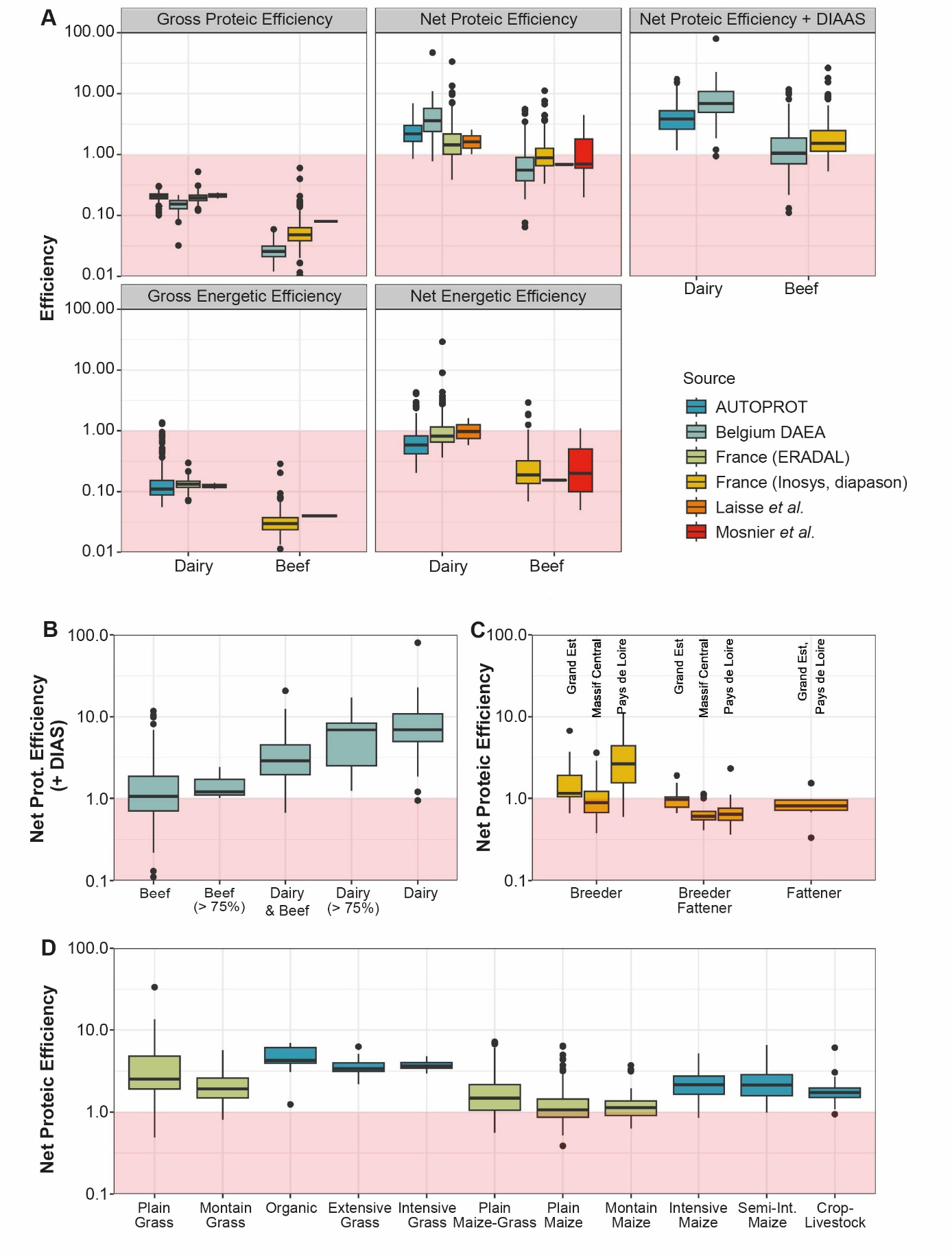 AUTOPROT project | 213 | Dairy cattle. | Belgium (Wallonia), France (Lorraine), Luxembourg, Germany (Rhineland-Palatinate and Saarland) | Gross and net efficiency, land use. Net productivity. | |