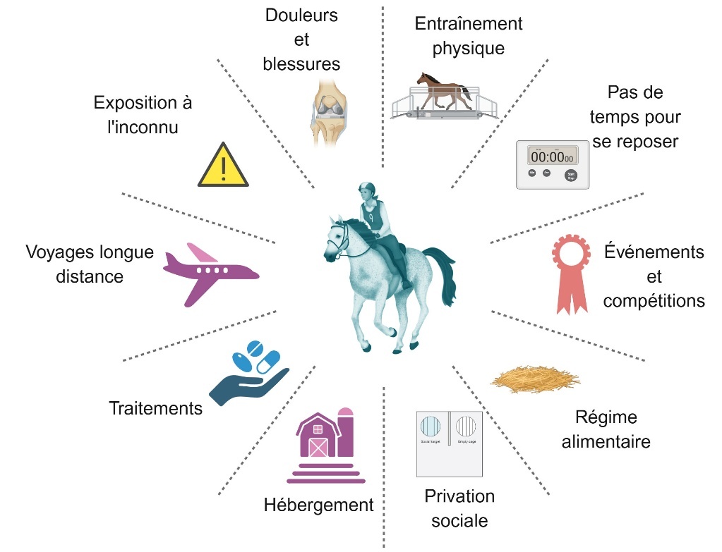 Figure 2. Facteurs de stress impactant le microbiote intestinal des chevaux.