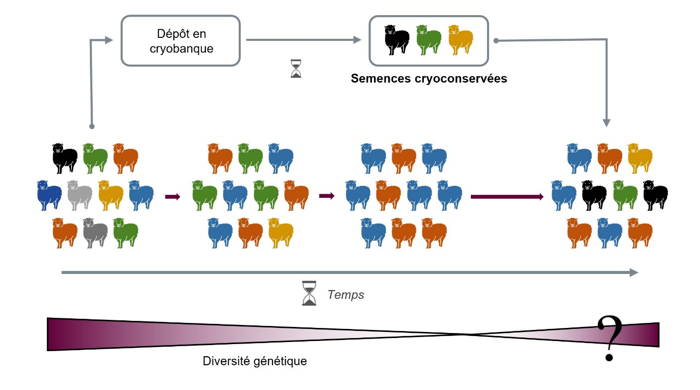 Figure 3. Réutilisation d’anciens individus dans une population animale grâce à l’utilisation de leur semence congelée.