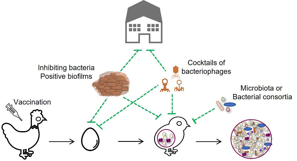 Figure 5. Research strategies to prevent the proliferation of E. cecorum in the poultry houses and the chick environment.